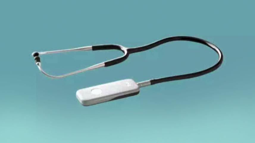 The device, manufactured by California-based Eko Health, replaces the traditional chest piece with a device around the size of a playing card and connects to smartphones to transmit results. It uses a microphone to analyse subtle differences in heartbeat and blood flow that the human ear cannot detect.