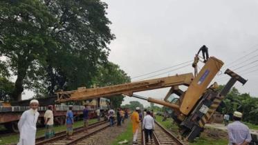 Crane overturns in Pabna: Dhaka’s rail link with northern, southern districts snapped