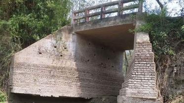 An old bridge on a local road at Hilora Adabari village under Mohera union in Tangail’s Mirzapur upazila has remained in a vulnerable condition due to shifting of soil under it during the last flood.