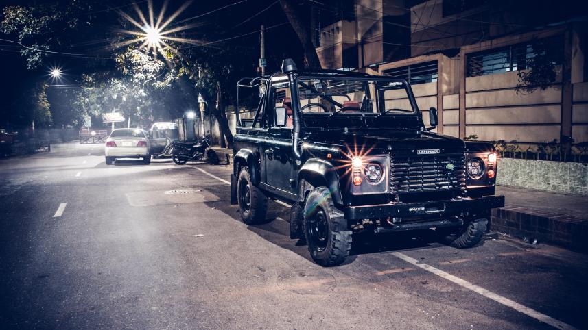 The Defender you're seeing today is seen and heard by high school students and teachers at coaching centres all across Dhaka. The sticky heat of the forests of the Congo have been replaced with the sticky heat that emanates from hormonal teens scared of professing their love for one another. The swamps and the waterlogged savannahs have been traded for impenetrable traffic jams and impassable potholes. Welcome, ladies and gentlemen, to what might be one of the few daily driven Defenders in Bangladesh – that too, an open top, black as the night piece.