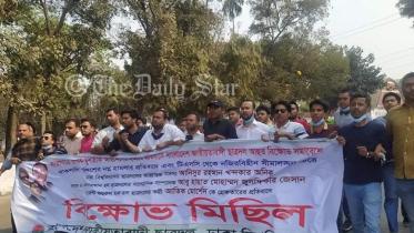 Jatiya Swechchhasebak Dal today held a rally protesting the death of writer Mushtaq Ahmed in jail custody, and the killing of journalist Borhan Uddin Mujakkir.