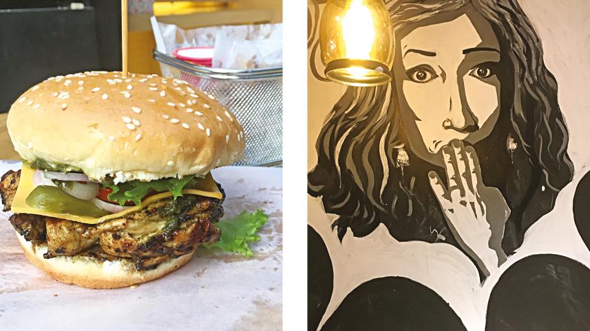 Despite starting out in a tiny garage, the popularity and demand for their burgers has allowed Daniel to expand to a much larger location in Banani. "I wanted a simple and casual place for people to relax, chill and enjoy good, affordable burgers. So we went for plain wooden chairs and tables and plain walls. But it seemed a little too bland for my artistic tastes, so I called many local artists, painted the walls black and made them into canvases to paint on." The artists did their magic and now, Boma's walls are adorned with huge artworks that will surely leave you snapping photos to share on Instagram while you wait for your burgers.