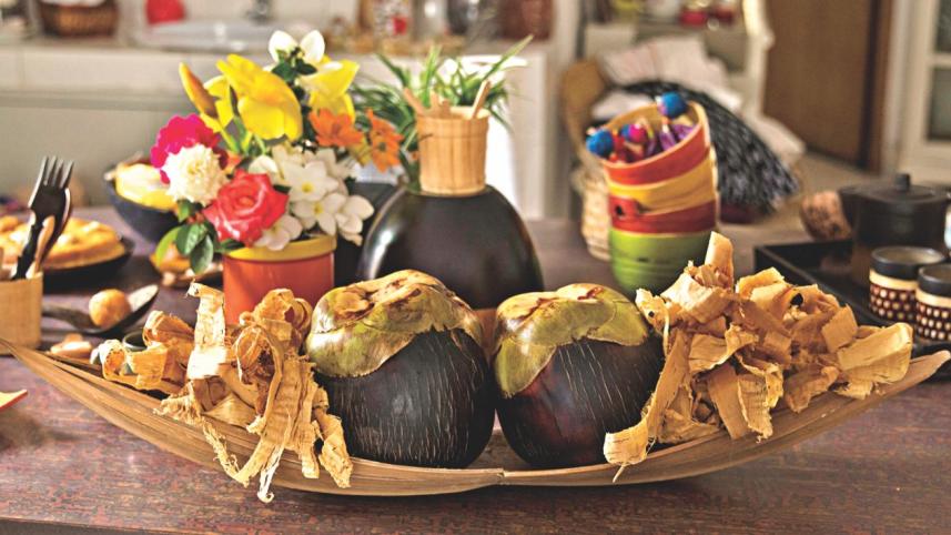 This is a traditional dessert made with ripened, fibrous, palm fruit. Addition of 'taal' extract adds a bitter flavour to it; a welcome change for our palate.