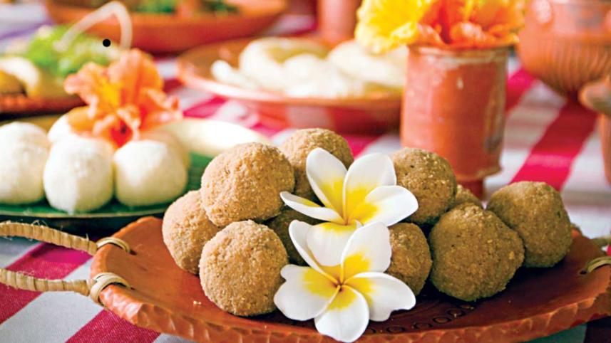 A traditional pohela Boishak dinner may have similar items as served in lunch, although the rice is generally replaced with polao. Meat and fish curries cooked in an oily, rich gravy of ginger, garlic and onion still play a key role in the dinner menu.