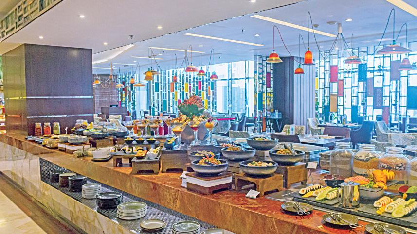 What's truly special about brunch here is the concept of live kitchen. How do you like your eggs? Sunny side up? Just ask the chef. Some eggs benedict? Tell them how you want it served and it will be done as you please. The live stations will offer dishes that are served with such presentation that they will have your mouth water. The roasted fish served with sesame dressing is truly a sight that can't be described until you've had a bite. Or the potato gratin presented along with roasted vegetables and chilli chicken looks just as scrumptious as the counter leads you to yet another surprise — a live chotpoti station.