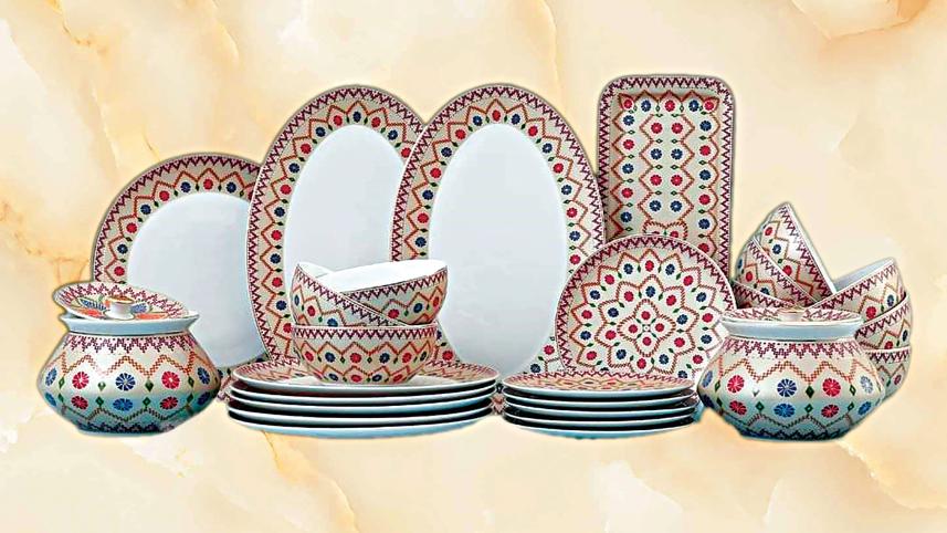 The most exclusive design collection from Araaz Ceramics includes Nakshi Kantha and Jamdani motifs. Whether that be a special occasion or a casual family gathering, food served in such beautiful dinnerware is bound to be an absolute pleasure to the eyes. To bring exotic flavour and a festive vibe to the dinner table, one must try out the Turkish themed porcelain collection from Araaz Ceramics.