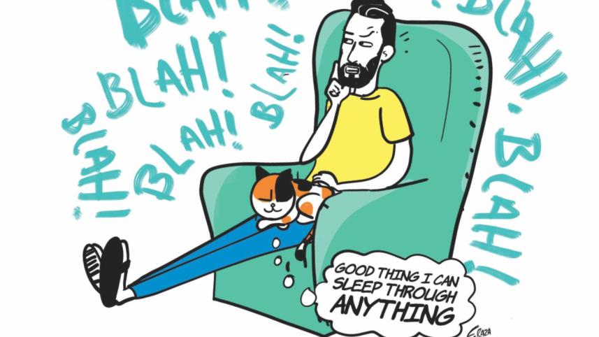 Your super interesting 17-minute story on your cat's gout surgery will meet a few 'hmms' and 'uhmms'. But if you have nothing to say even when people discuss porn, there is trouble somewhere. You are a bored bore if your responses are limited to two syllables at best.