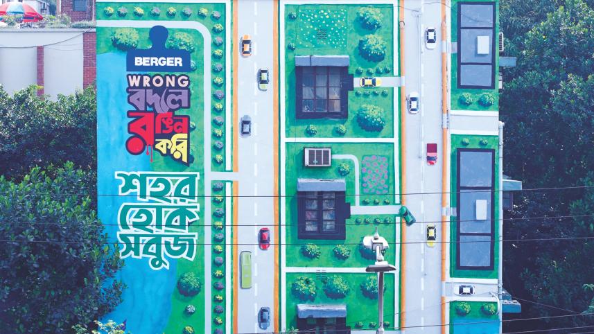 Wall art is not merely just a tool for decoration, but can also be an effective medium to convey messages and raise awareness on social issues. Keeping this in mind, Berger Paints Limited Bangladesh has taken a unique intiative to raise awareness regarding urban tree plantation, familial and social norms, and a beautiful childhood. Their campaign was titled 'Wrong Bodle Rongin Kori,' meaning creating a colourful world by changing the wrongs, both socially and intellectually.