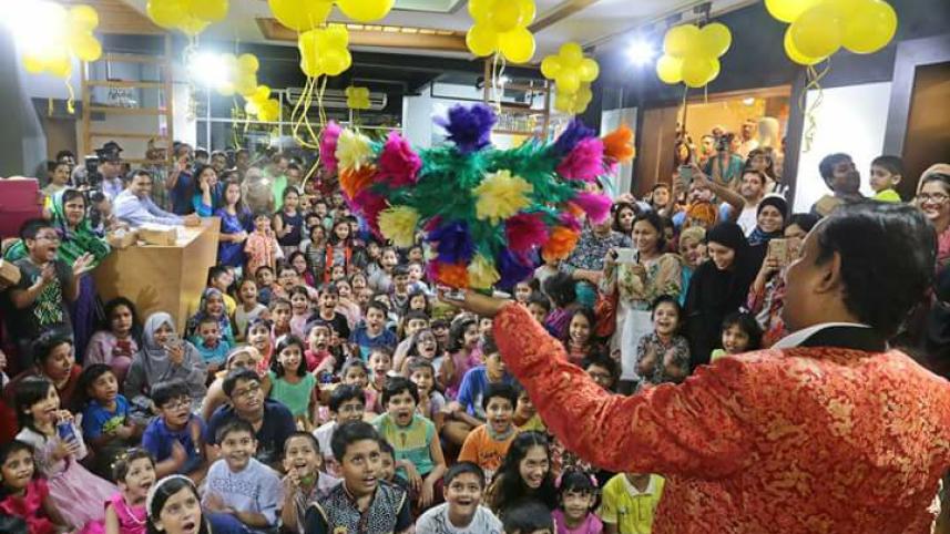 All his life, he performed his shows mostly for underprivileged children in Bangladesh. Organised by Kazi Shakil Foundation and several NGOs, he travelled to the remotest corners of Bangladesh, including refugee camps to perform his shows. He even once performed his show on the air. One of the NGOs chartered a plane for a free ride for such kids. They had never flown on a plane. Their favourite Magic Uncle was there to entertain them — a double treat.