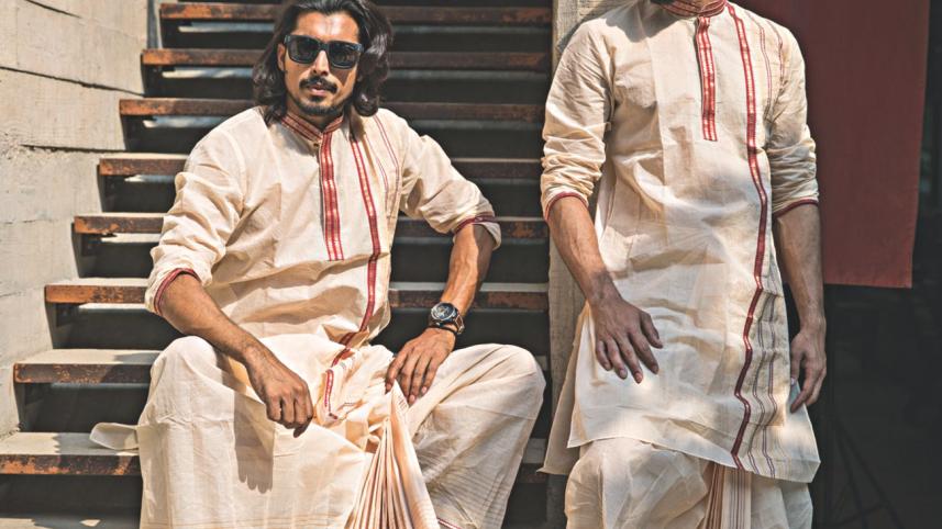 A hot favourite amongst the youth, pant-style pajamas are both functional and stylish, adding just the right amount of casual flair to the whole outfit. Usually made of cotton, you can find them at Bishworang for Tk 580, Longla for Tk 800 or even at Deshi Dosh. Opt for a contrast with cream, black and white or get the pant-style pajama tailor-made in the same colour as your panjabi or kurta.