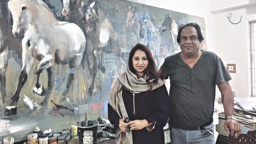 Over the years, Jamal Ahmed has created a niche for himself among the art aficionados of the country. His portrayal of women is artistically pleasing, and the series on pigeons is marvellous. While working with Niharika Momtaz, he has worked on saris to transform the vivid images from the canvas to the anchal of the silk saris.