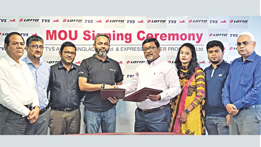 Under this agreement, buyers will get a chance to win a Striker motorcycle from TVS, including Apache 4V 160, through a raffle draw by purchasing any Lotto shoe priced at Tk 1,500 or higher. Also, 100 lucky winners will have the chance to win Lotto Sports Shoes.