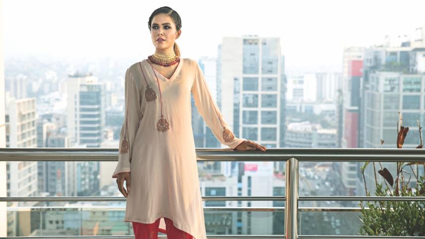Rima Naz has always been popular for creating collections that are unique, different and yet, up-to-the-minute trendy. Her collection has always given a vibe of a mix between the west and east. In her latest collection for the summer, she portrays the same. While there are designs with unique cuts signifying a touch of fusion, there are also motifs and fabrics that signify the importance of the native.