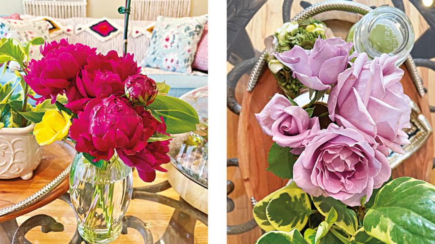 Although I do not cut the flowers that I grow, I do sometimes bring some home when the weather forecast predicts heat or heavy rain. When I bring fresh flowers indoors, they change at once the ambiance of the house.