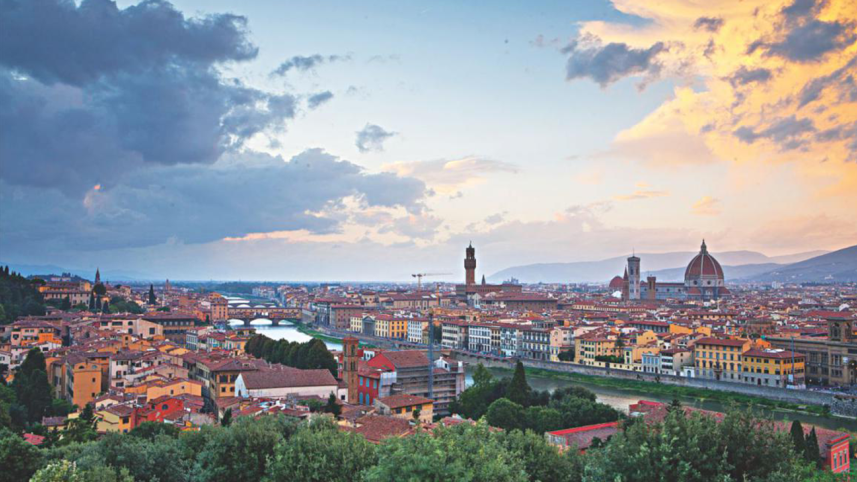 On a bright sunny August afternoon, the view from the Camping Michelangelo—a camp site set on a hill above the city of Florence—is spectacularly exhilarating. The city scene is dominated by the towering dome of the Cathedral of Saint Mary of the Flower, popularly known as "Duomo". Further afield is the river Arno meandering across the city. My love for Florence, one of the most beautiful cities of the world, was not, I must confess, a love at first sight. It grew. And it is growing, even after the third visit.