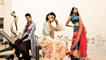 The biggest sartorial shift in the wedding arena is the emergence of the shirt blouses, pants as petticoats, and roomy capes over saris. Even to the most open minded, these styles maybe ‘a bit too much’ for the ‘deshi’ bride.
