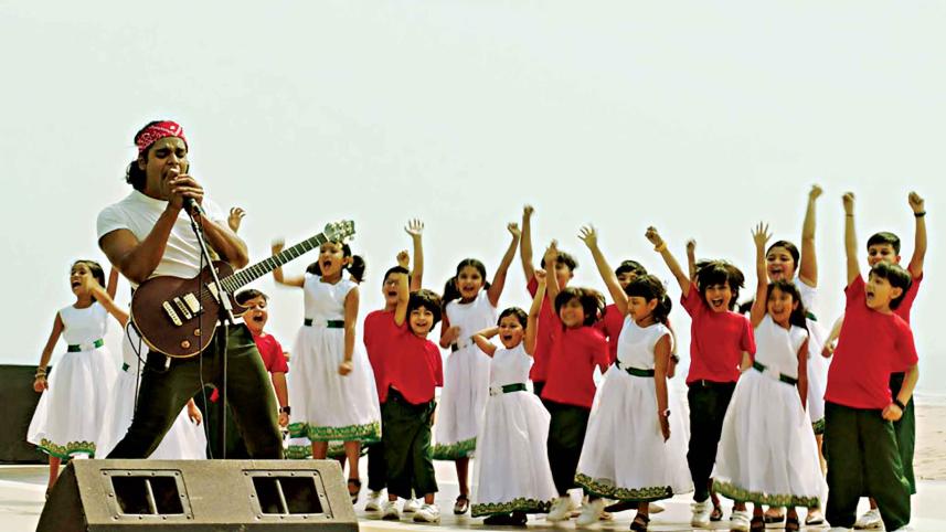 "Tumi Banglar Dhrubo Tara, Tumi Hridoyer Batighor — There's one person who fits that description and thus it was the perfect pick as the theme song of Mujib Borsho. The song itself was sang by all the giants of the music industry in Bangladesh and the visuals were something to bask in.