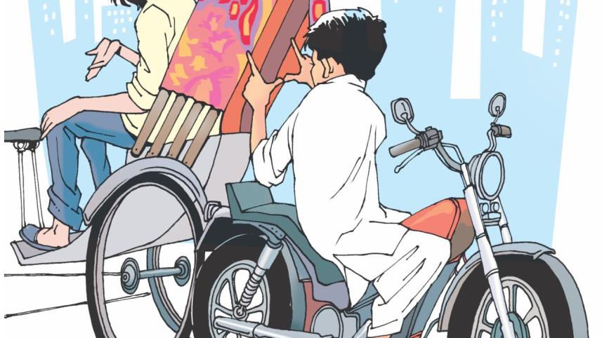By the time I was early into my studies at Dhaka University, I had grown shoulder-length hair, very luxuriant (looking at myself now with thinning hair, I occasionally feel deluded that I had actually once possessed a head of wavy silky long hair!). I used to put on trendy psychedelic shirts and felt rather good about myself. So I took a rickshaw to go to my old school after five years to collect my testimonial. I was nearing the good old building in Mohammadpur when a motorcycle hove into view from behind and made a half turn to stop in front of the rickshaw. A shady looking character in white pajama and punjabi got down, and signaled my rickshaw puller to stop. Even though it was high noon, I must confess to being more than a little perturbed. But I kept my nerve and asked, "Yes?"
