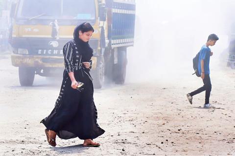 The Khulna-Satkhira highway has been in a dismal condition for a long time. Due to constant movement of vehicles, the road remains shrouded in dust, tormenting pedestrians, residents, and local businesses. The photo was taken in the Zero Point area of Khulna city. Photo: Habibur Rahman