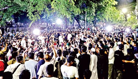 Protesters stage a sit-in outside the chief adviser’s residence on Hare Road in the capital last night, demanding a ban on the Awami League. Photo: Anisur Rahman