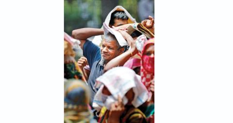 In the scorching summer heat, low-income individuals queued up on Abdul Gani Road in the capital yesterday to buy rice and flour from an OMS truck at subsidised prices.