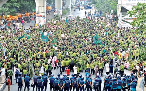 Several hundred nursing students blocked the Shahbagh intersection in Dhaka yesterday afternoon to press home their demand for upgrading the nursing diploma to Bachelor’s degree. The blockade triggered a severe traffic congestion in the nearby areas and caused immense sufferings to commuters. Photo: Amran Hossain