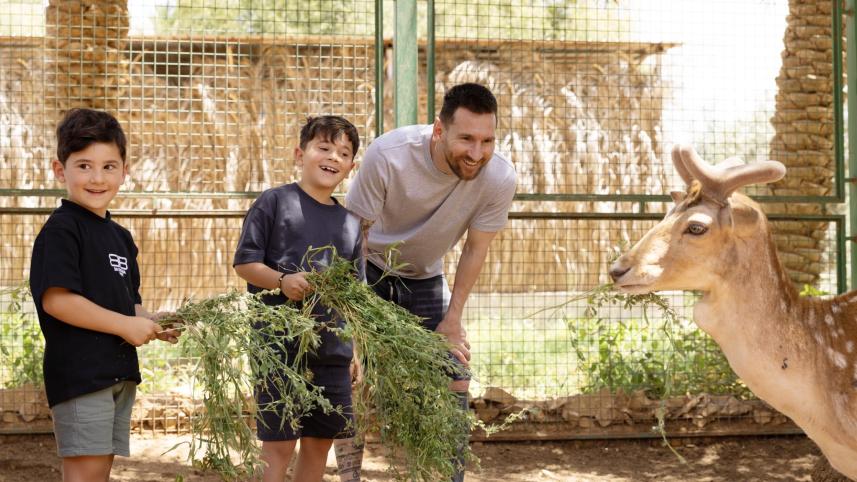 Argentinian football superstar Lionel Messi and his family arrived in Saudi Arabia on Monday to enjoy a holiday in Riyadh. Saudi Arabia’s tourism minister took to Twitter on Monday to welcome Argentinian football legend to the Kingdom. “I am happy to welcome Saudi Tourism Ambassador Lionel #Messi and his family on his second vacation in Saudi. We are happy to share our authentic Saudi welcome with you all,” Minister of Tourism Ahmed Al-Khateeb tweeted. The minister later tweeted pictures of Messi and his family soaking up the Saudi sun, playing traditional board game carrom, and feeding an Arabian gazelle with two of his sons. The trip is Messi’s second vacation in Saudi Arabia, having visited Jeddah with friends last year. In his recent social media post, the PSG footballer shared a photo of the date palm groves in Saudi Arabia and expressed his surprise at the country's abundance of greenery. “Who thought Saudi has so much green? I love to explore its unexpected wonders whenever I can.” PHOTO: TWITTER
