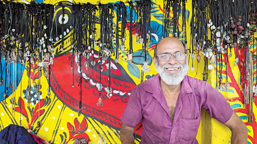 For the last 12-13 years, he has been stationed outside Charukola. His small stall is unassuming, but each pendant tells a story. Some bear interesting designs. Others look like they belong in forgotten fairy tales.