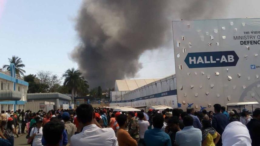 Huge plumes of thick black smoke could be seen in the sky near the Yelahanka air base.