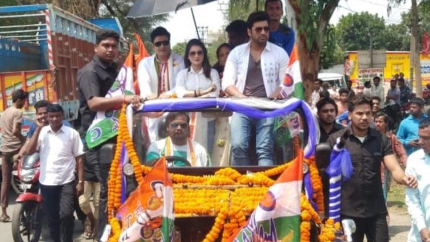 Ferdous Ahmed, a very popular actor in both Bangladeshi films and Tollywood (Bengali film industry in India), was reportedly seen campaigning for TMC candidate Kanhaiyalal Agarwal in Raiganj constituency. He was accompanied by Bengali Tollywood actors Ankush and Payal.