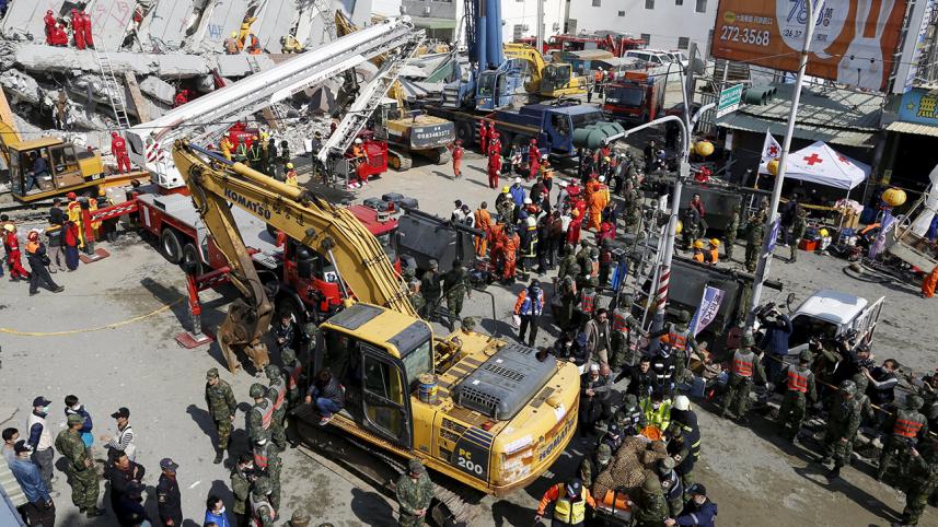 Earlier a 20-year-old man was also pulled out alive, but hopes are fading for 120 others thought to be trapped in the ruins of the Weiguan Jinlong building in Tainan City.