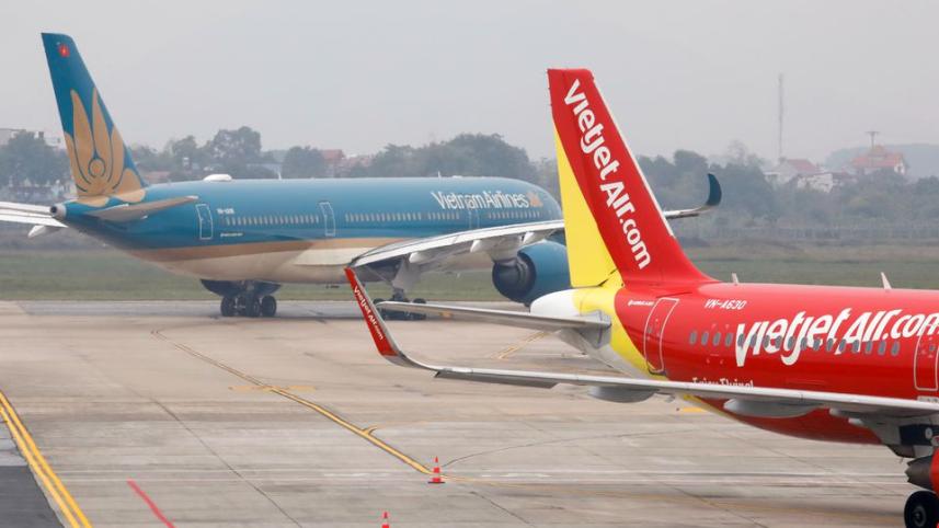 An aircraft of the national flag carrier Vietnam Airlines taxis past a Vietjet aircraft at Noi Bai airport in Hanoi, Vietnam December 23, 2020. Picture taken December 23, 2020. REUTERS/Kham