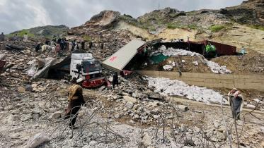 Landslide in Pakistan buries trucks, kills at least 2 people