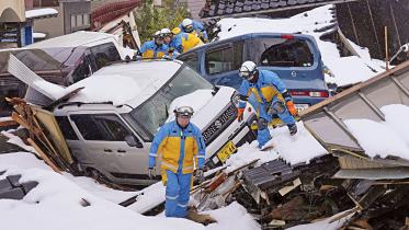 A powerful earthquake that hit Japan on New Year’s Day killed at least 55 people, with rescue teams struggling in freezing temperatures yesterday to reach isolated areas where many people are feared trapped under toppled buildings.