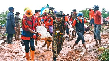 The death toll from a landslide triggered by monsoon rains in eastern Myanmar rose to at least 41, an official said late yesterday, as emergency workers continued for a second night their desperate search through thick mud for the scores feared missing.