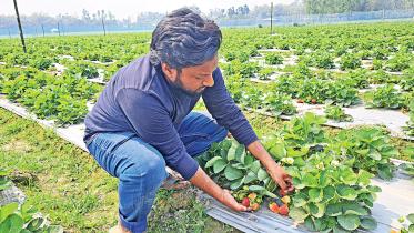 It was only a few months ago when Jahid Hasan Basunia first started cultivating strawberries, but none of his neighbours had the idea on how to grow the juicy fruit.