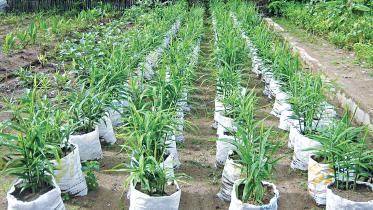 Farmers in three upazilas of Meherpur are now cultivating ginger in sacks on commercial basis and earning good profits.