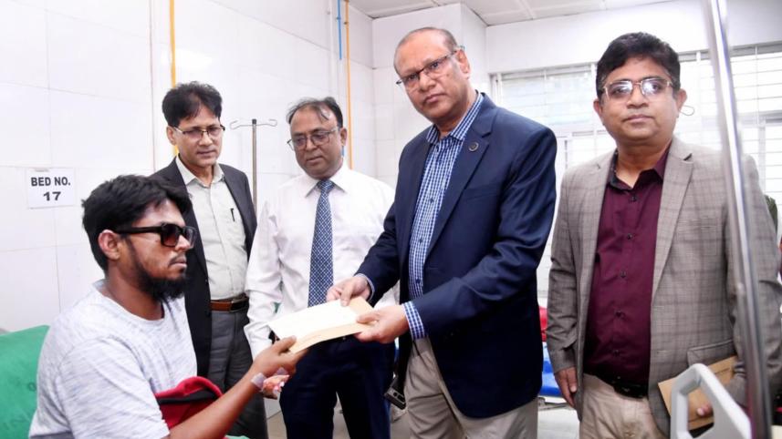 A few men in jackets and ties walked into the Dhaka National Institute of Burn and Plastic Surgery. They came with envelopes containing cheques for the workers injured in the Mirpur fire.