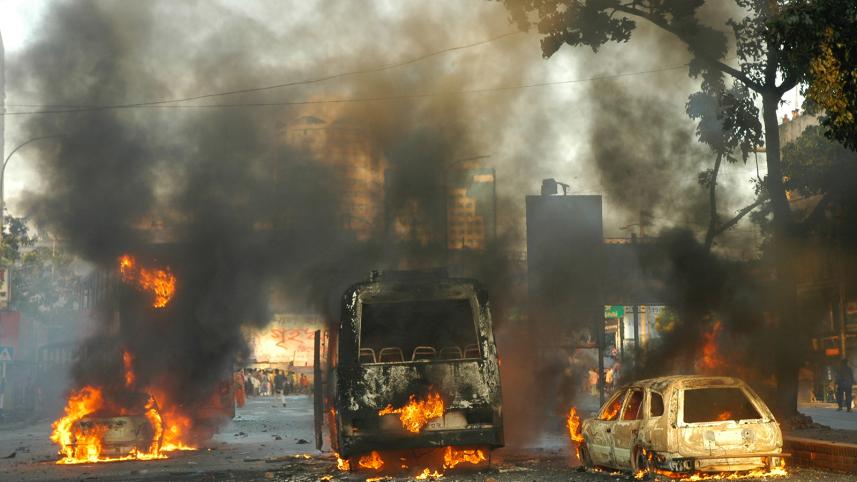 Angry protesters around 6:00pm torched and threw stones to vehicles chanting slogans against the attackers. Thick black smoke soon mushroomed from about 20 burnt vehicles in Bijoynagar, Purana Paltan Crossing, Dainik Bangla Intersection, Zero Point, Bangabandhu Avenue, Golap Shah Mazar, General Post Office (GPO) and Gulistan areas. Police fired scores of teargas canisters and charged baton to bring the situation under control.