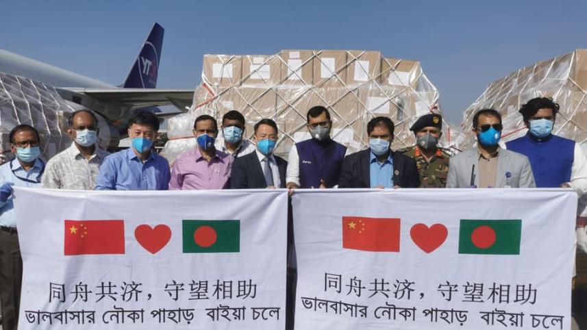 On March 26, China donated medical supplies -- including 10,000 testing kits, 10,000 personal protective equipment (PPE) and 1,000 infrared thermometers -- to help Bangladesh fight the coronavirus outbreak.