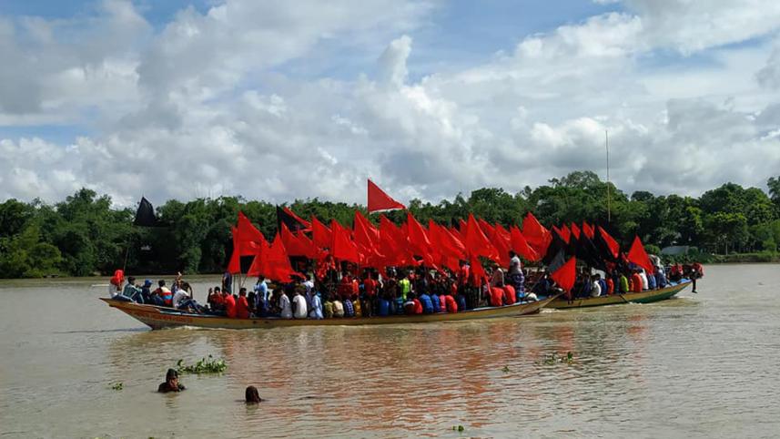 A boat procession on the occasion of the Holy Ashura was brought out in Kaliganga river at Charbewtha in Manikganj on Friday, September 21, 2018. Photo: Zahangir Alam Biswas