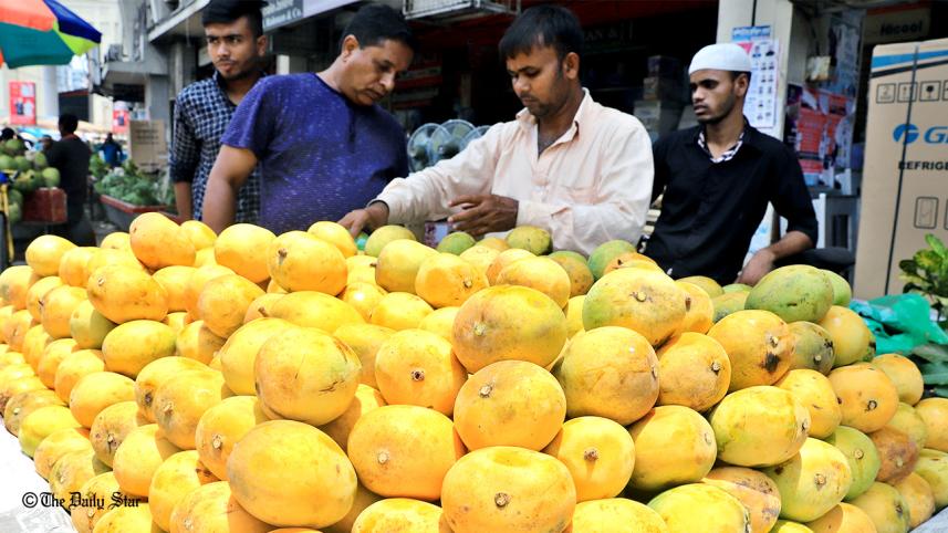 With summer in full blaze, juicy seasonal fruits have started to hit the markets, albeit with a rather steep price tag that usually comes with the early varieties. However, the all-too perfect yellow-ochre hue of these mangoes could make one question whether these were ripened naturally. The photo was taken in front of Bangabandhu National Stadium in Gulistan. Photo: STAR/ Amran Hossain