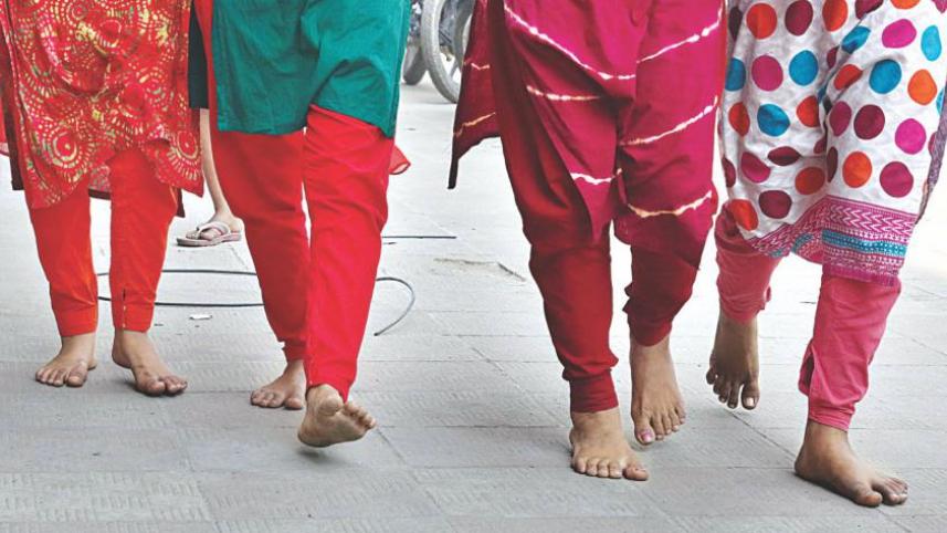 If picture speaks a thousand words then the one carried in the back page of this paper on Sunday speaks more than that. It shows several women garment workers walking on a footpath unshod, to grab a quick lunch since they don't carry lunch to work. They had come out without footgear to give a slip to their work supervisors because if they were detected leaving the factory premises during lunch break, they would have to pay for their absence from their wages.
