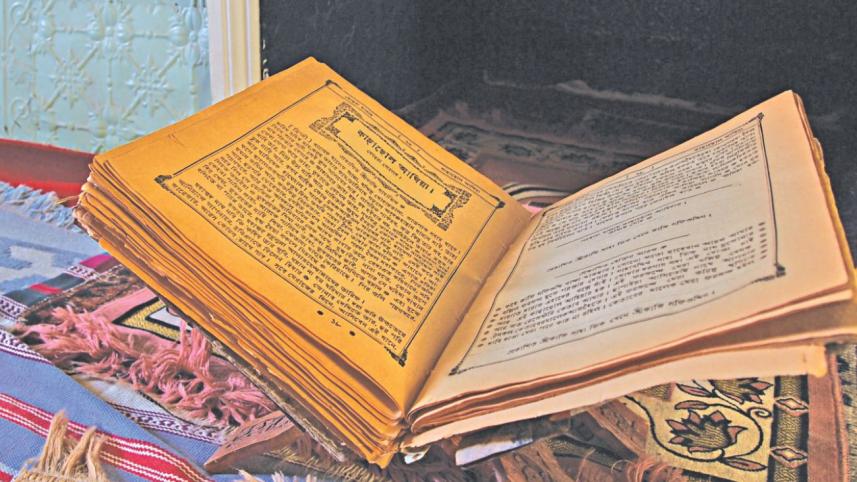 In July 2009, the afternoon that I first stepped into the little red corrugated iron mosque that still stands, a gritty winter dust storm was raging outside. Leaning against the faded green walls of the mosque was a wooden stringed instrument, and on a shelf, between a bottle of attar and a tarnished ring set with a bright orange stone, there was a large book. A hand-written English label claimed that the book was "The Holy Koran". However, turning the first brittle pages revealed that it was not a Quran. Rather, it was a 500-page book of Sufi poetry in Bengali.