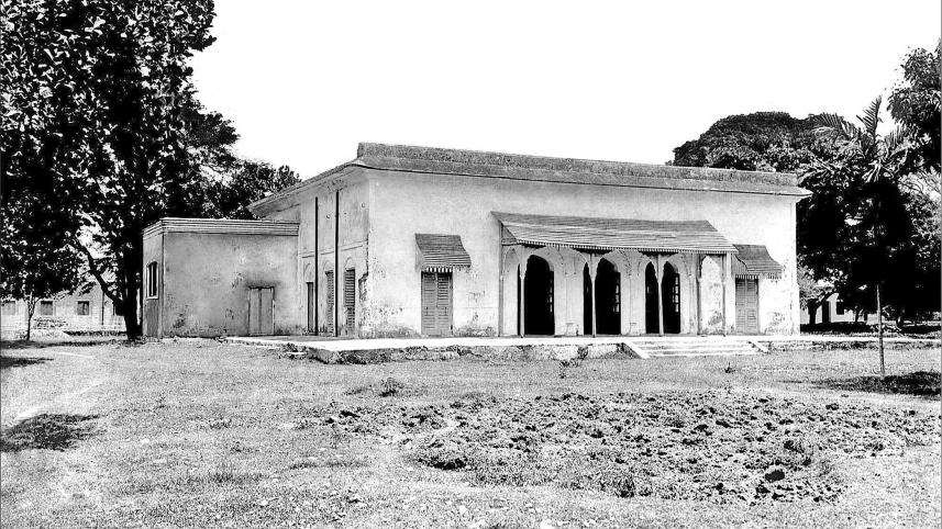 This paragraph contains an interesting impression of Dhaka by Bishop Heber whose host and guide Judge Masters, gave him a short brief on the current status of the city which he diligently entered in his dairy, for he wrote, "Dacca, Mr. Masters says, is, as I supposed, merely the wreck of its ancient grandeur. Its trade is reduced to the sixtieth part of what it was, and all its splendid buildings, the castle of its founder Shah Jehanguire, the noble mosque he built, the palaces of the ancient Nawabs, the factories and Churches of the Dutch, French, and Portuguese nations, are all sunk into ruin, and overgrown with jungle. As for the English there are none, except a few indigo planters in the neighbourhood, and those in the civil or military service. But the Hindoo and Mohammedan population, Mr. Masters still rates at 300,000. I drove in the evening, with Mr. Masters, through the city and part of the neighbourhood. The former is very like the worst part of Calcutta near Chitpoor, but has some really fine ruins intermingled with the mean huts which cover three-fourths of its space. The castle which I noticed, and which used to be the palace, is of brick, yet showing some traces of the plaster which has covered it. The architecture is precisely that of the Kremlin of Moscow, of which city indeed, I was repeatedly reminded in my progress through the town. The Grecian houses, whose dilapidated condition I have noticed, were the more modern and favorite residence of the late Nawab, and were ruined a few years since by the encroachments of the river. The Pagodas of Dacca, are few and small, three-fourths of the population being Mussulmans, and almost every brick building in the place having its Persian or Arabic inscription. Most of these look very old, but none are of great antiquity. Even the old palace was built only about 200 years ago, and consequently, is scarcely older than the banqueting-house at Whitehall. The European houses are mostly small and poor, compared with those of Calcutta; and such as are out of the town, are so surrounded with jungle and ruins, as to give the idea of desolation and unhealthiness. No cultivation was visible so far as we went, nor any space cleared except an area of about twenty acres for the new military lines (read Purana Paltan).The drive was picturesque, however, in no common degree; several of the ruins were fine, and there are some noble peepul-trees."