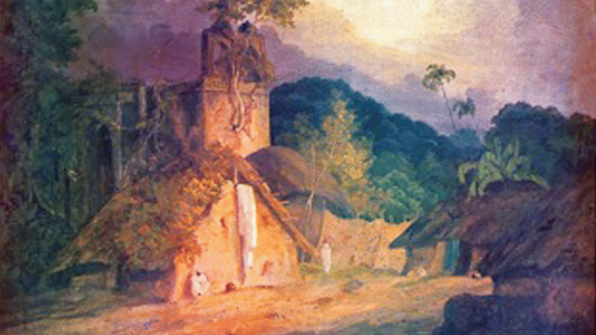 I came across the name of Sir Charles D'Oyly (1781–1845) in a book by the eminent art-historian, Mildred Archer, in the early 1980s. Mildred specialised in 18th and 19th century art in colonial India by European and Indian artists, including those of the Company School. In 1991, Academy Publishers in Dhaka brought out a commendable publication on the valuable sketches of D'Oyly, based on his original rare book Antiquities of Dacca, first published from London in 1816. It is a general assumption that D'Oyly's friend, the renowned artist Chinnery, acted as his tutor and mentor in his artistic endeavours. Apparently, their artworks are very similar, especially their drawings (sketches) and watercolours, which can even confuse the most discerning eye. However, the notable British art-historian, Giles Eyre, had reflected on this dilemma and wrote that, "the influence of Chinnery on D'Oyly is hard to define. Giles Tillotson in his prescient and carefully researched work Fan Kwai Pictures for the Hong Kong Bank (London, 1987) does not think he (D'Oyly) was in any formal sense a pupil. Probably Chinnery's influence especially in the Dacca years when they roamed the mofussil together in search of rural subjects and the picturesque, was more seminal than direct. Even if D'Oyly benefitted from observing the compositional method of approach by Chinnery, his technique is very much his own".