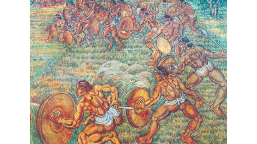 It's not like there are no paintings in this regard. There are. I painted on this subject but the violence was not the subject of my painting; I painted a picture of self-sacrifice. The people of Bangladesh sacrificed themselves without any hesitation, they thus embraced their death. I painted pictures of this grand sacrifice. I believe that there is something great behind sacrifice. Thus, people have sacrificed to achieve something great. And I painted pictures depicting the resistance of the people of Bengal. At this moment I remember how Sheikh Mujib had said, "Be prepared with everything that you have." He had said an amazing thing. In my picture, farmers were shown to be putting up a resistance but they held local weapons in their hands. They jumped into the war carrying weapons made in their own land. This struggle was a spontaneous one; they carried with them the belief that in return for their sacrifice, they'd receive the ultimate gift. The neglected people of Bengal did not jump into combat because they were patronised by any powerful force. They did so impulsively, for the sake of their existence.
