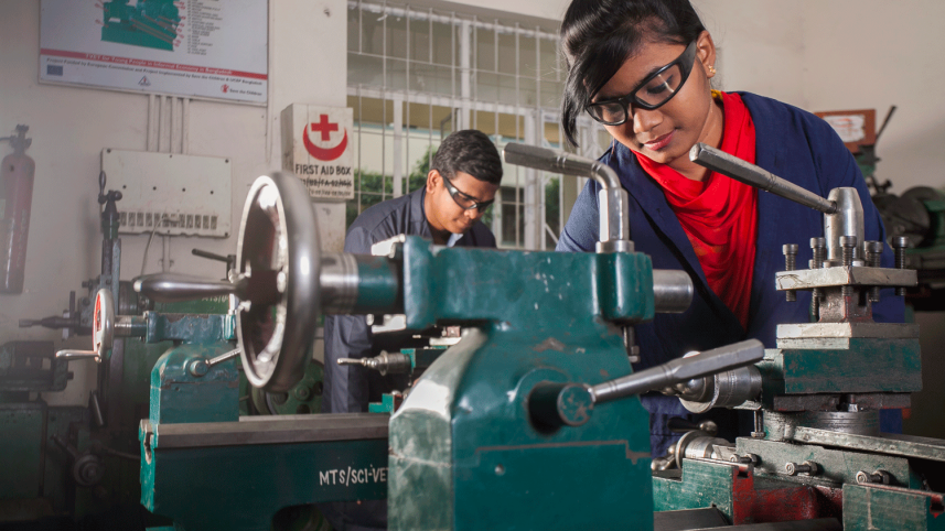 As for UCEP, it recognises, as an organisation, that only education is not enough to get people good jobs, but that individuals must also have skills and the ability to apply them—a good education must, therefore, focus on this too. To address this, UCEP offers TVET programmes that specialises on providing knowledge and skills for employment. The facilities that it has to provide such skills with are quite extensive, ranging from tools and machineries that teach students how to operate the various equipment that can be found in garments factories, to how to fix the engine of a car and any other electronic devices and more. Presently, because of what the market is demanding, it has been focusing on providing training in light engineering, construction and tourism and hospitality to its students. But it has the facility and is providing training in many other fields.