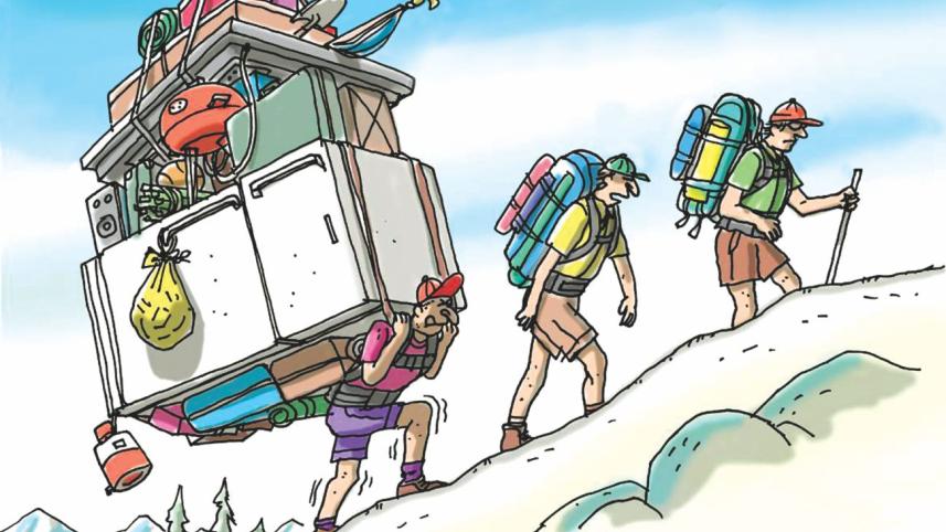 When we go on vacation, we have to take some of our stuff with us. That's a smaller version of our houses in two big suitcases and a carry-on luggage. As soon as we get down to the hotel room, we open the suitcases and lay out all our stuff. And just when we start feeling at home because we have at least some of our stuff with us, an old friend, who now lives there, calls and says, "Why don't you come over and spend a couple of days with us?"