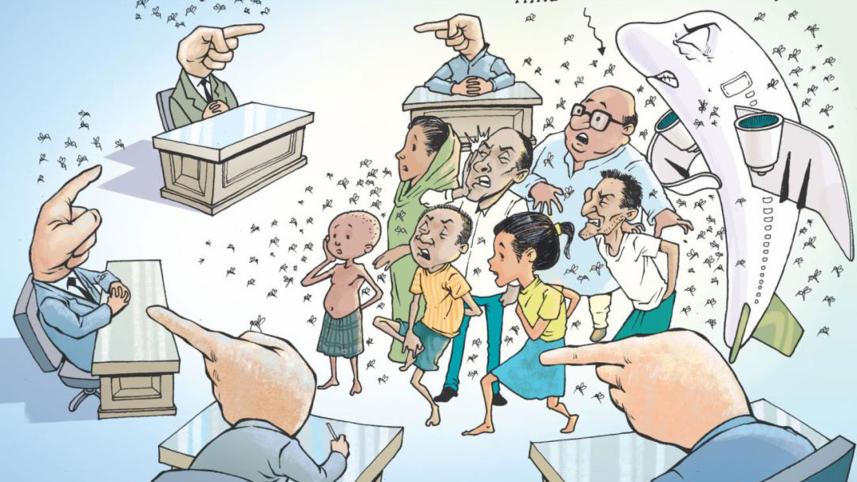 According to an old published report, most of the equipment of the city corporations are non-functional, if not out of order. Then there is this issue of not having enough people to operate the equipment. The efficacy and price of imported medicine have been a source of perennial complaints and controversies. Millions of takas are being spent to no avail. Explaining the inadequacy of their anti-mosquito drive, one city corporation staffer said that the loud-noise-making foggers could alert mosquitoes from a distance. While these machines could be good for adulticiding (controlling mosquitoes in their adult stage), they were not that effective against larva. The moment streets are strewn with fogs of insecticide, the insects seek shelter in the plants of our terraces or rooftop gardens. I guess regular warfare has turned into guerrilla warfare.